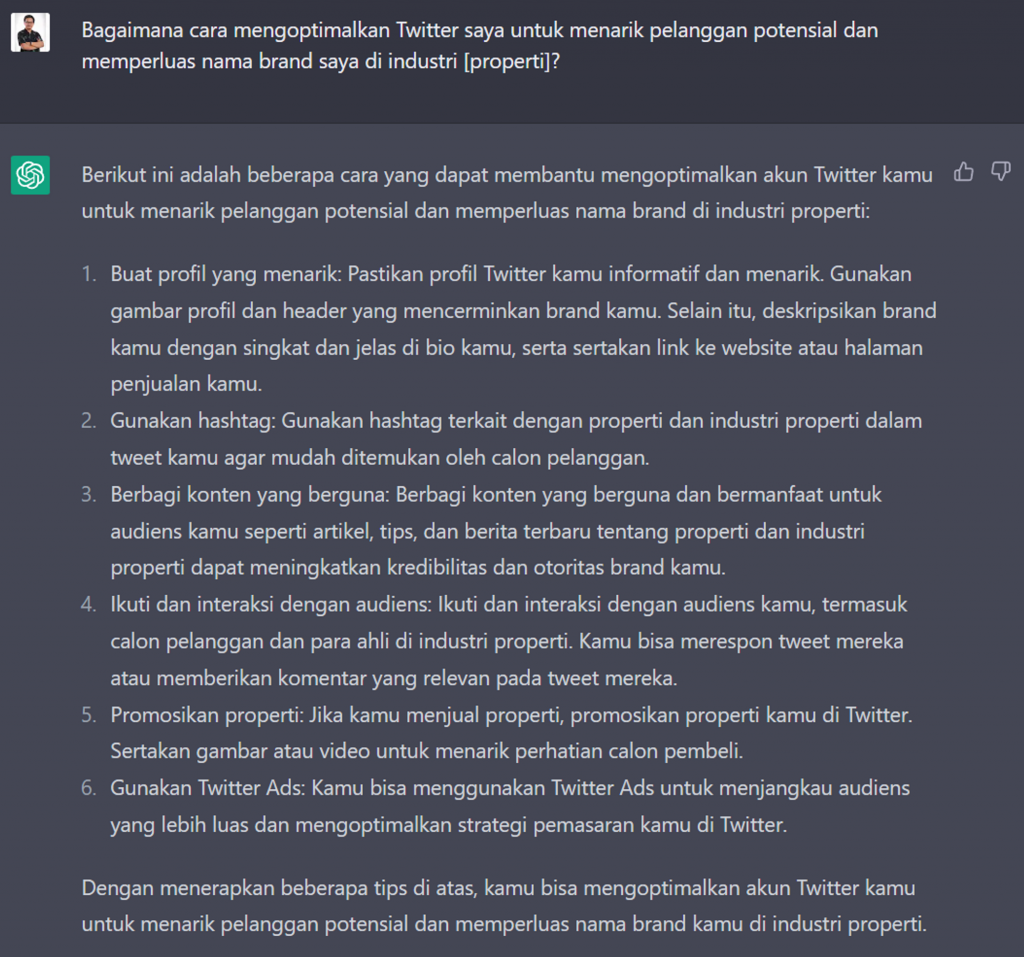 Bagaimana cara mengoptimalkan Twitter saya untuk menarik pelanggan potensial dan memperluas nama brand saya di industri [industri]?